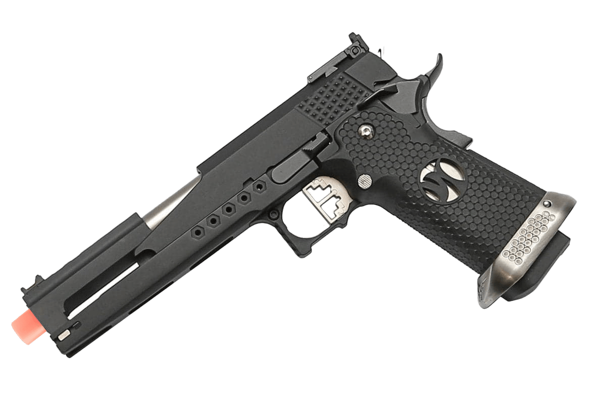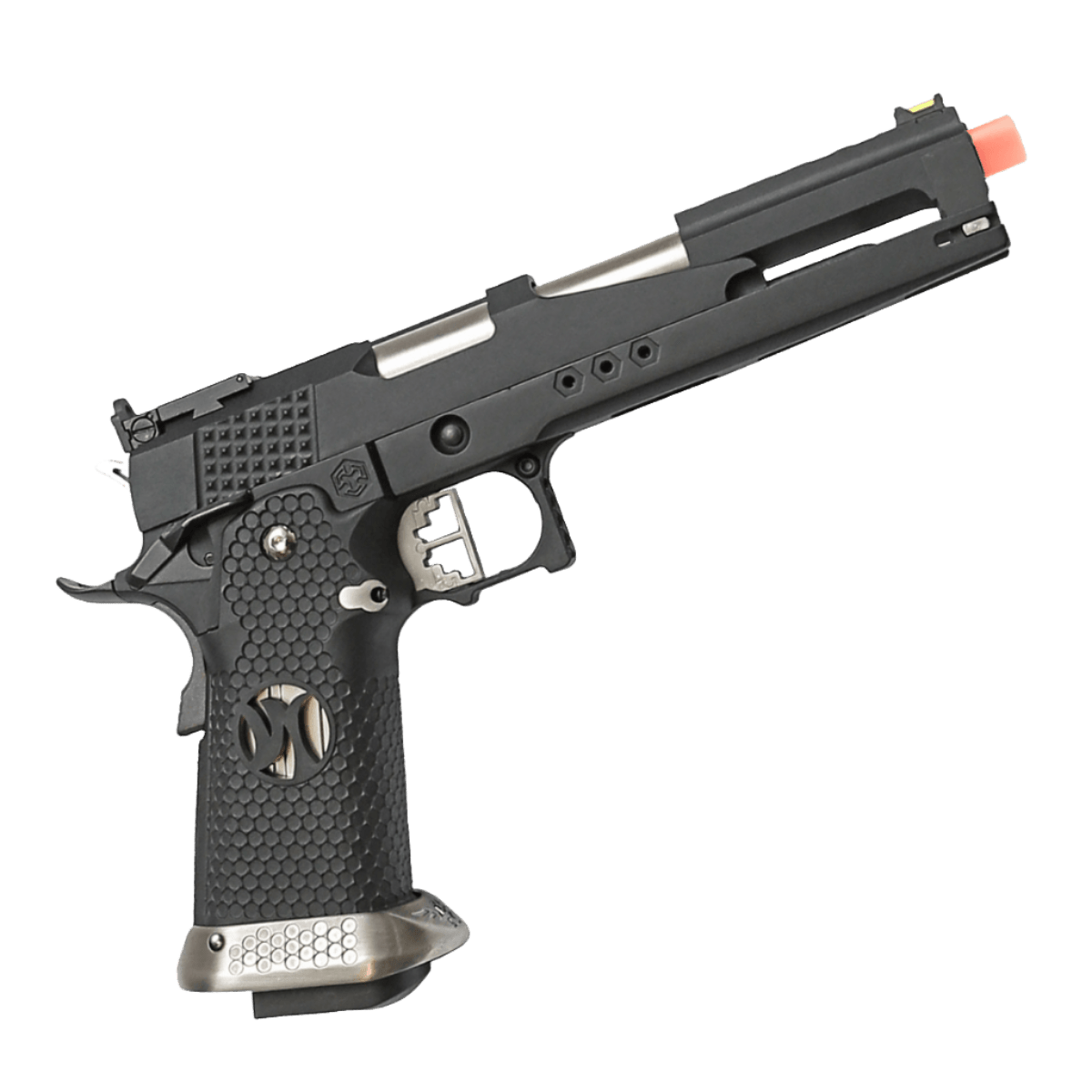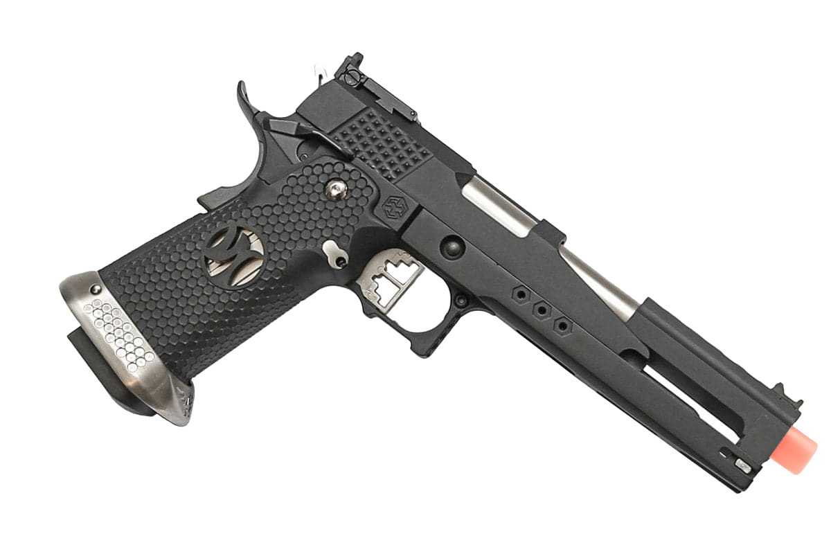 Stand out with the AW Custom AW-HX2202 Split Frame Hi-Capa. Featuring distinctive split frame design, CNC and polymer construction, and realistic gas blowback action, this unique pistol delivers 280+ FPS performance with eye-catching aesthetics.