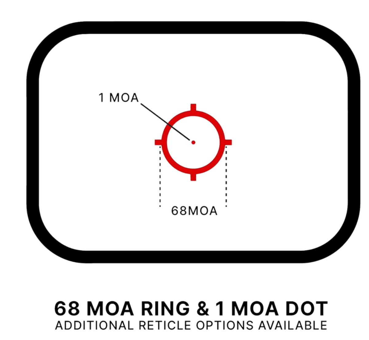- 68 MOA Ring Reticle: Ring with vertical/horizontal stadia and 1 MOA center dot