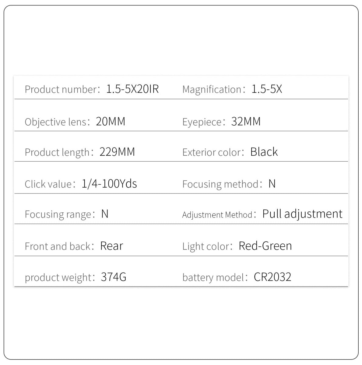 1.5-5x Variable Magnification: Low-power range ideal for close to mid-range shooting scenarios