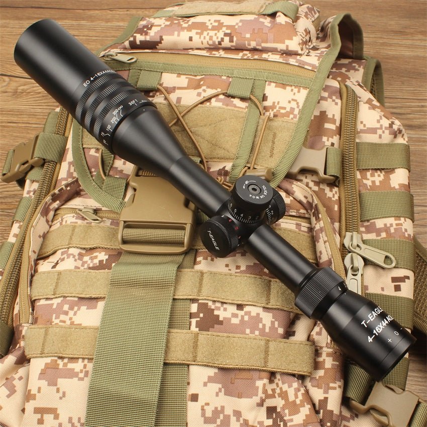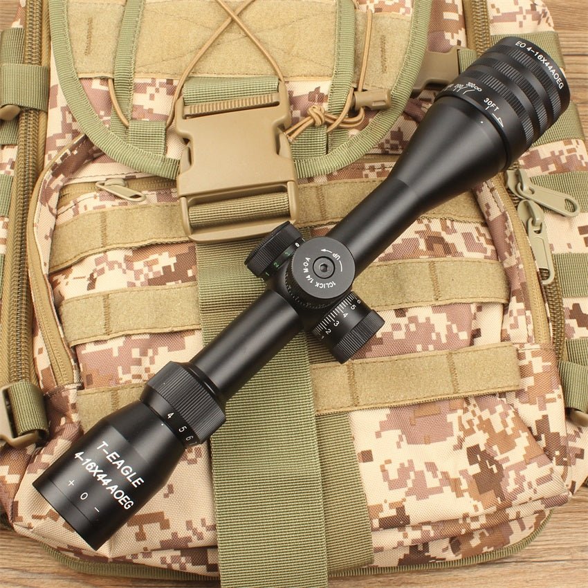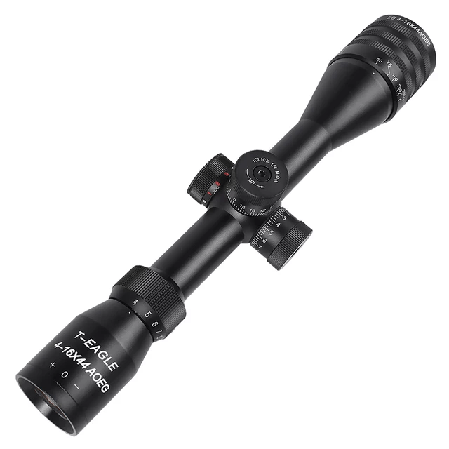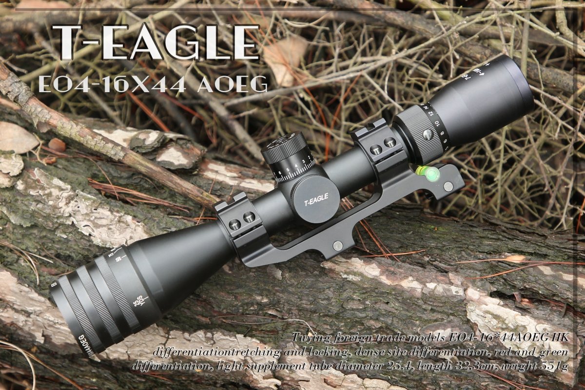 The T-Eagle EO 4-16X44 AOEG delivers exceptional long-range capability with 4-16x magnification, adjustable objective, and unique tri-color illumination (red, blue, green). Featuring a 44mm objective lens, wire reticle, and second focal plane design, this tactical scope excels in precision shooting, hunting, and varied lighting conditions.