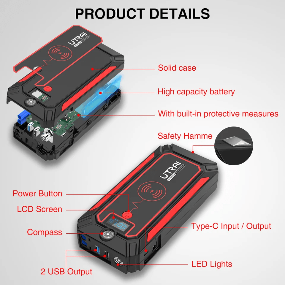 Jstar 4 Multifunction Emergency Vehicle Tools 12V Battery Booster 8.0L