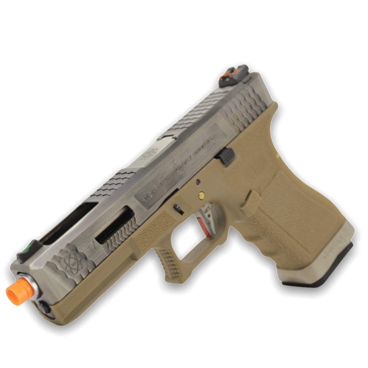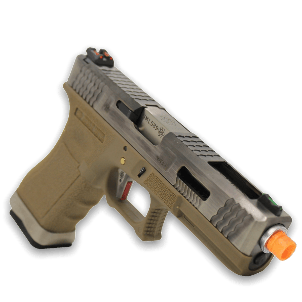 Experience premium gas blowback performance with the We Tech G-Force G-Series 17 T8. Featuring a metal slide with reinforced polymer lower and realistic blowback action, this high-performance GBB pistol delivers 280+ FPS velocity with reliable G-Series design.