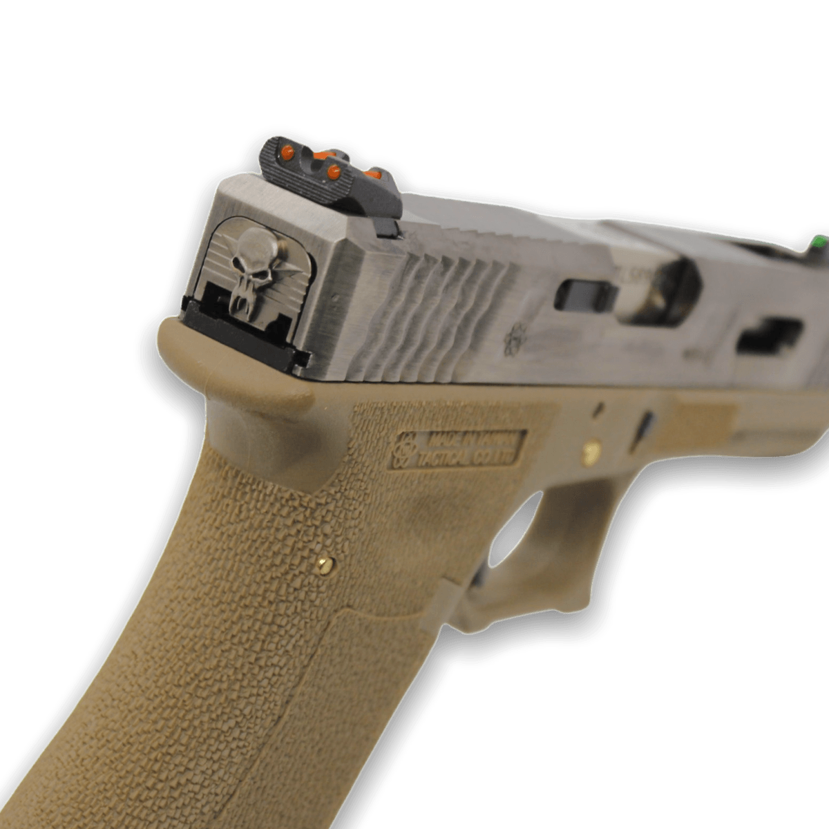 - Silver/Tan Finish: Distinctive two-tone tactical styling