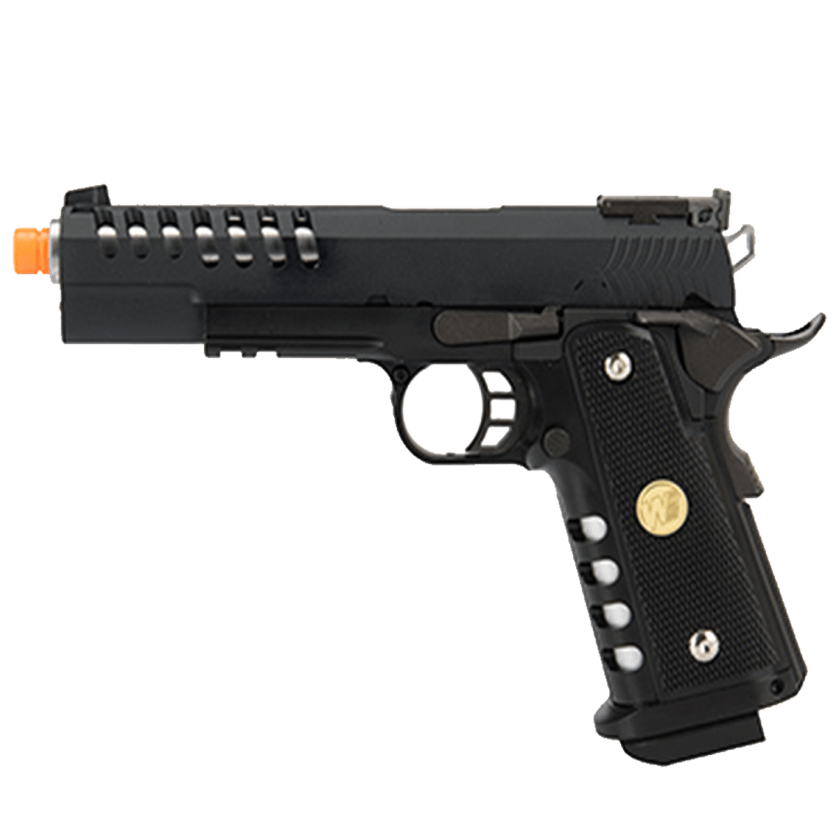Unleash lightning-fast performance with the We Tech Full Metal Hyper Speed Hi-Capa. Featuring full metal construction with extended 123mm barrel and realistic gas blowback action, this K-Version Hi-Capa delivers competition-grade speed and precision.